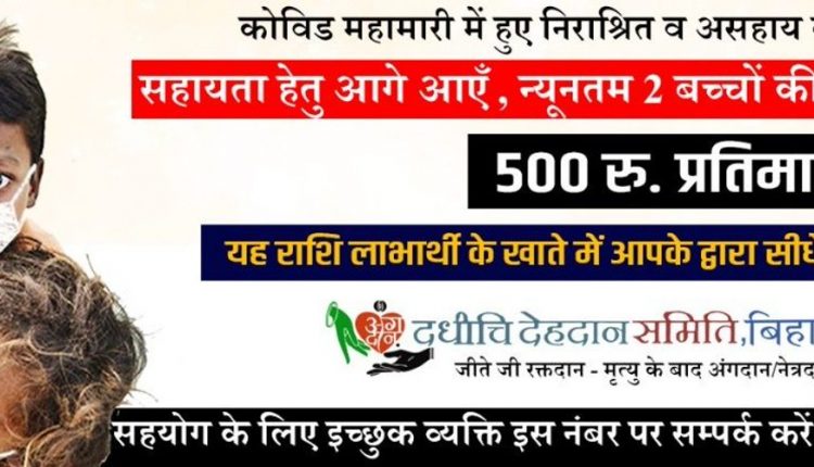 कोरोना से निराश्रित 582 बच्चों की दधीचि देहदान समिति करेगी सहायता