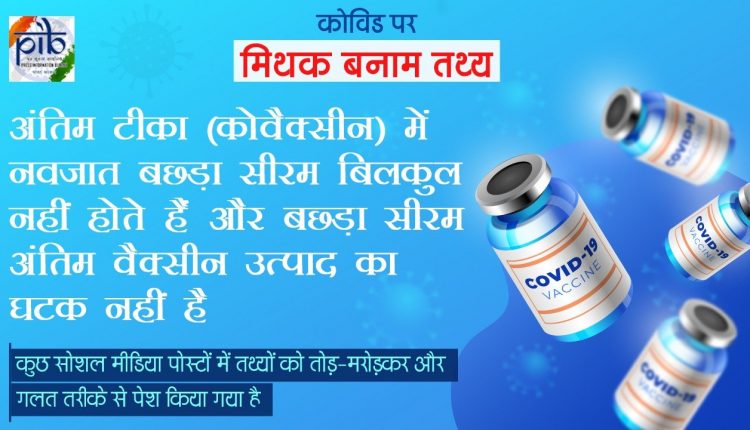 पटना (voice4bihar desk)। कोवैक्सीन बनाने में गाय के बछड़े का सीरम मिलाये जाने का भ्रम फैलाने वालों के खिलाफ केंद्रीय स्वास्थ्य एवं परिवार कल्याण मंत्रालय ने बुधवार को बयान जारी किया है। सोशल मीडिया पर चलायी जा रही इस खबर कों मंत्रालय ने फेक न्यूज करार दिया है। कोवैक्सीन की संरचना के बारे में कुछ सोशल मीडिया पोस्ट में कहा गया है कि कोवैक्सीन के टीका में नवजात बछड़ा सीरम है।
