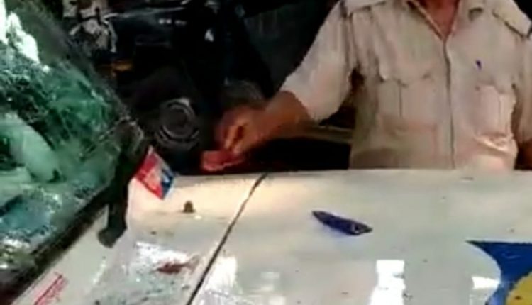 रोड़ेबाजी कर आधा दर्जन गाड़ियों को किया क्षतिग्रस्त, पुलिस के जवानों व चालकों ने भागकर बचाई जान