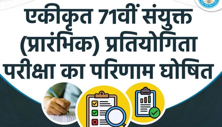 आयोग के परीक्षा नियंत्रक के मुताबिक 13 सितम्बर को आयोजित एकीकृत 71वीं संयुक्त (प्रारम्भिक) प्रतियोगिता परीक्षा के आधार पर संयुक्त (मुख्य) प्रतियोगिता परीक्षा एवं वित्तीय प्रशासनिक पदाधिकारी एवं समकक्ष (मुख्य) प्रतियोगिता परीक्षा हेतु सफल उम्मीदवारों के परीक्षाफल का प्रकाशन किया गया है।