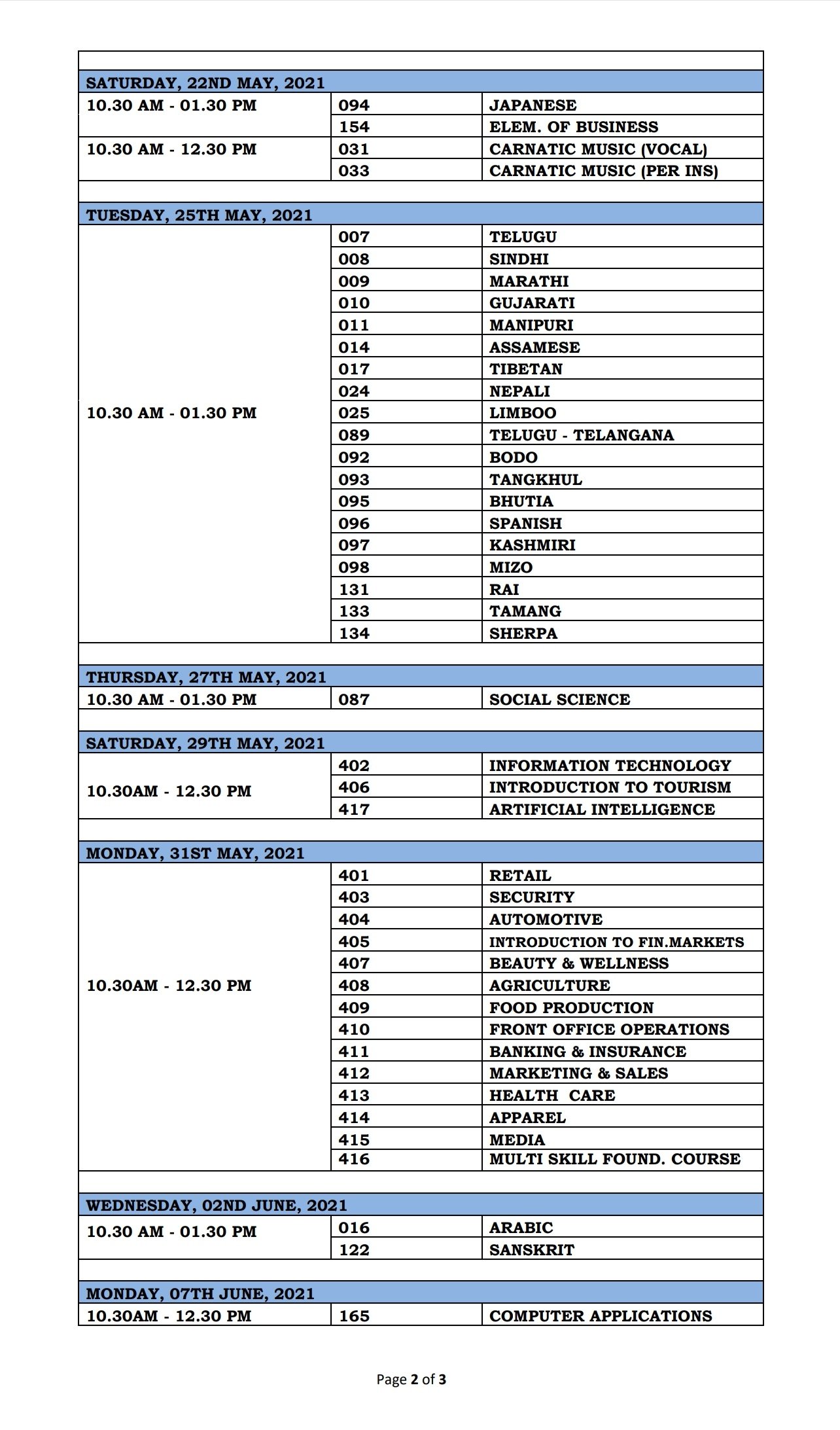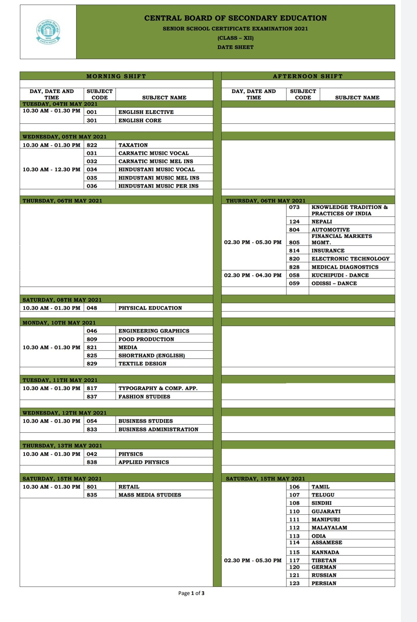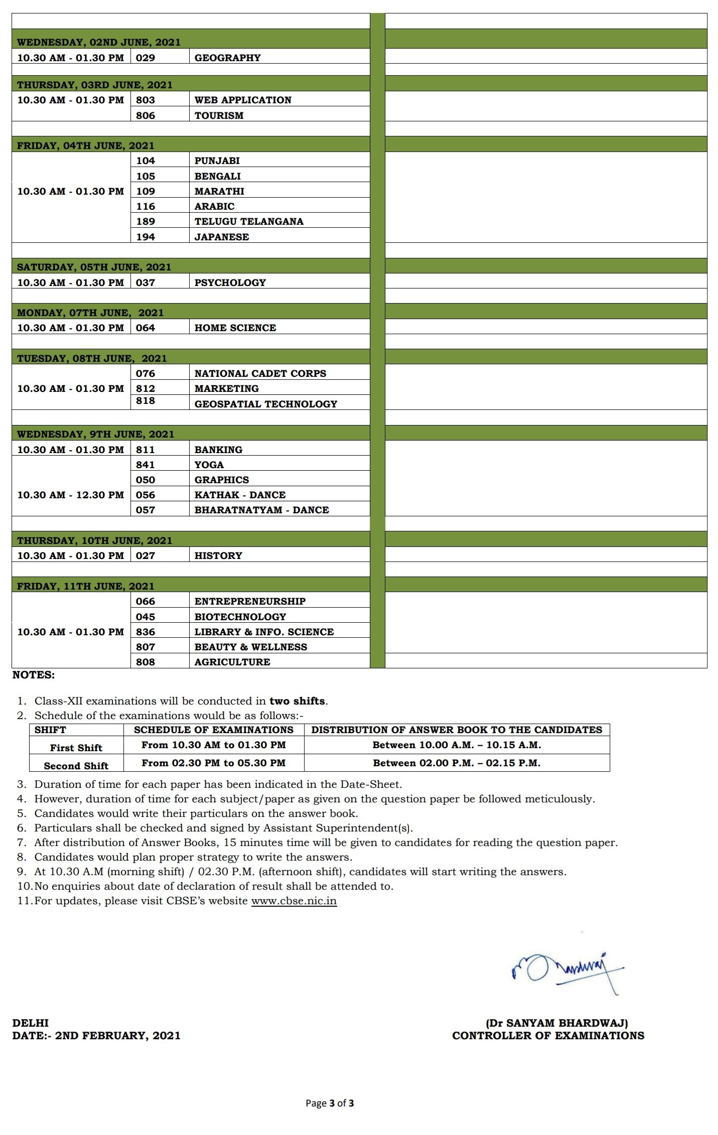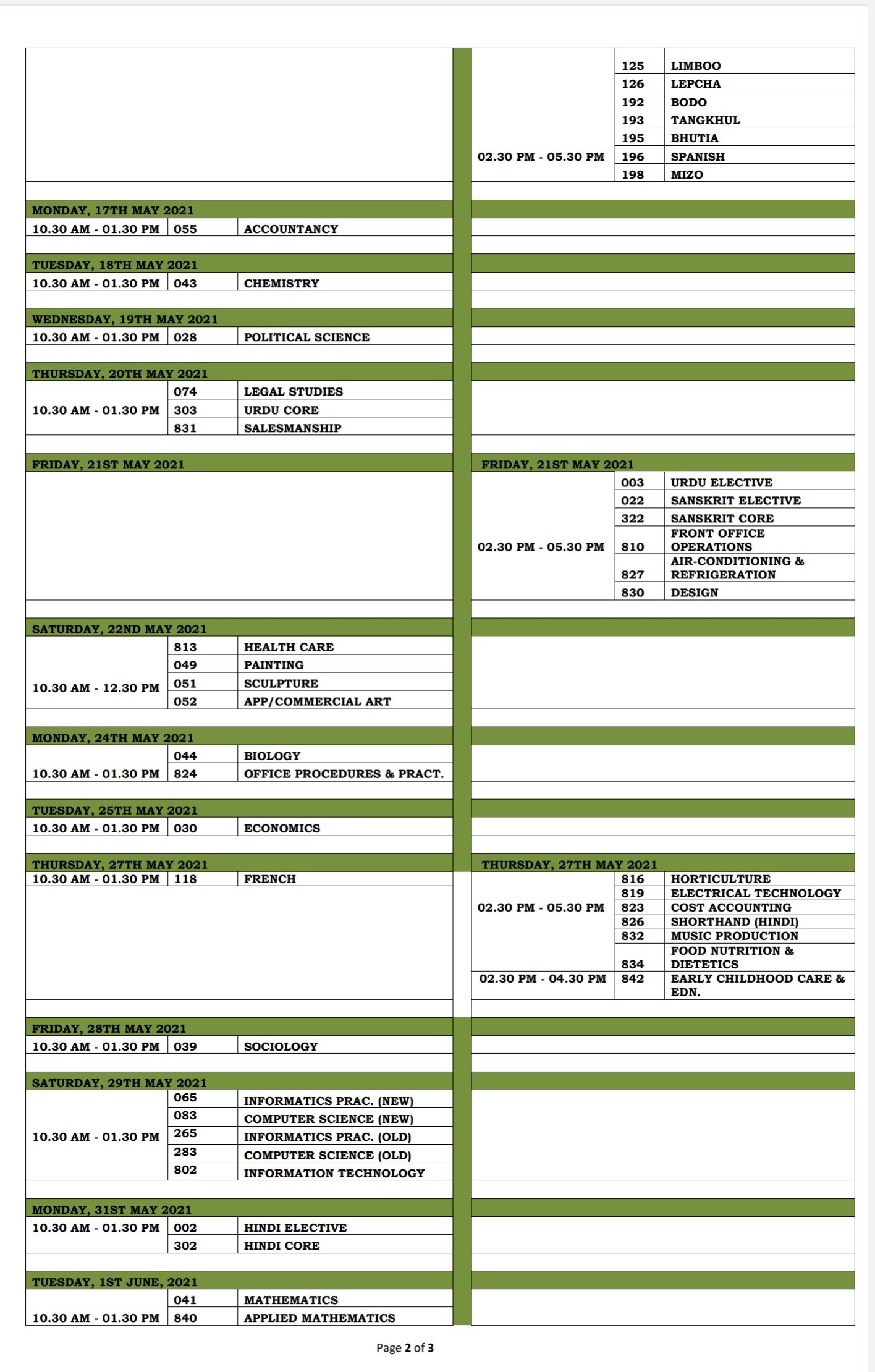इनमें दसवीं की परीक्षा सात जून तक चलेगी जबकि बारहवीं की परीक्षा 11 जून को खत्म होगी। परीक्षा शुरू होने के आधे घंटे पहले छात्रों को आंसर शीट दे दी जायेगी। 15 मिनट में छात्रों को आंसर शीट भरना होगा। परीक्षा शुरू होने के 15 मिनट पहले क्वेश्चन पेपेर दिये जायेंगे। 15 मिनट का समय छात्रों को प्रश्न पत्र को पढ़ने और इसे समझने के लिए दिया जायेगा। जवाब लिखना शुरू करने का समय दोनों पालियों में अलग-अलग 10.30 और 02.30 बजे निर्धारित है।