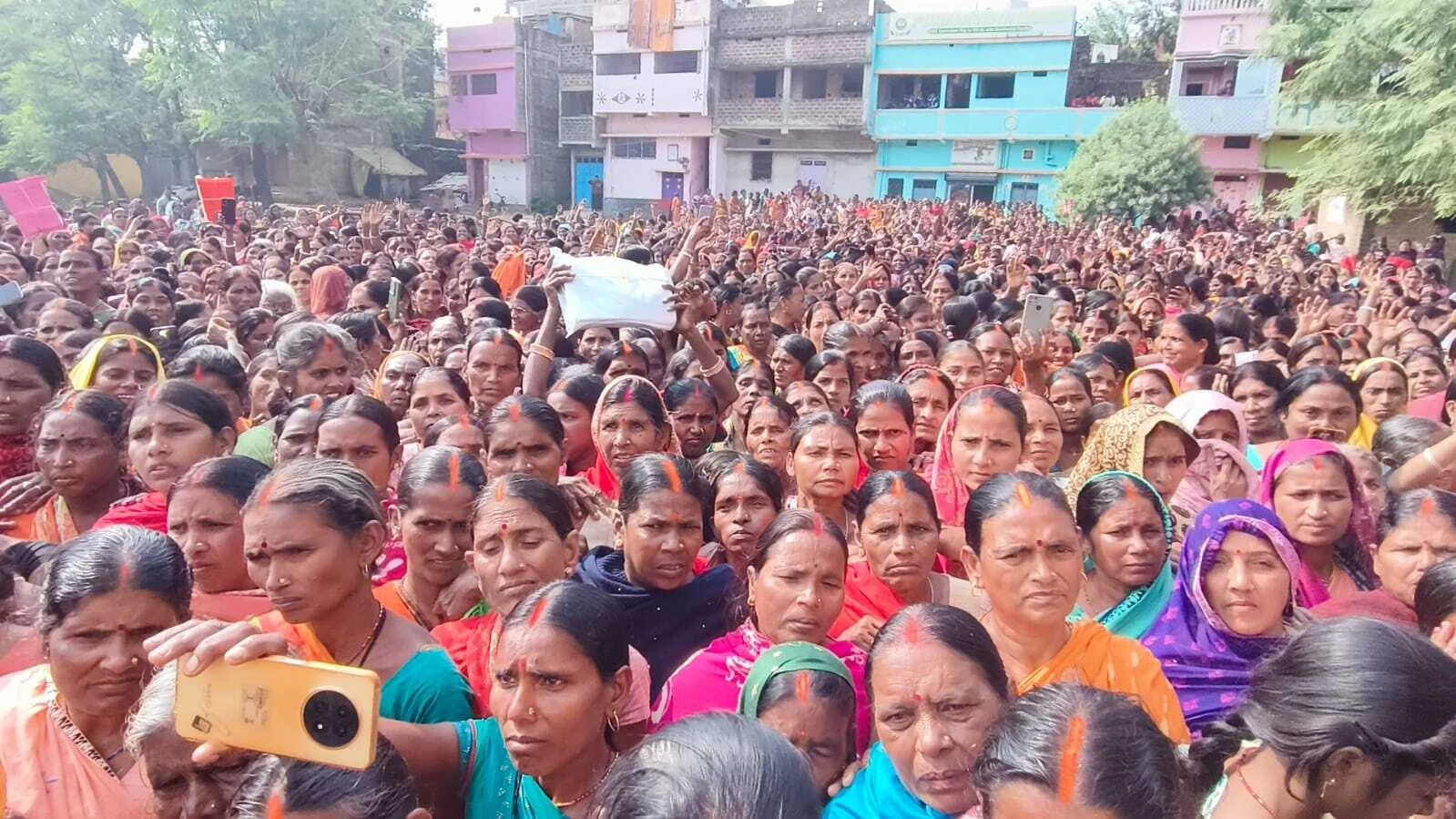 कार्यालय से भागते एरिया कोऑर्डिनेटर को महिलाओं ने घेर लिया