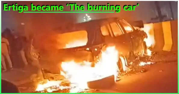 सीएनजी से चलने वाली कार धधक उठी, पल भर में आग की लपटों ने घेर लिया