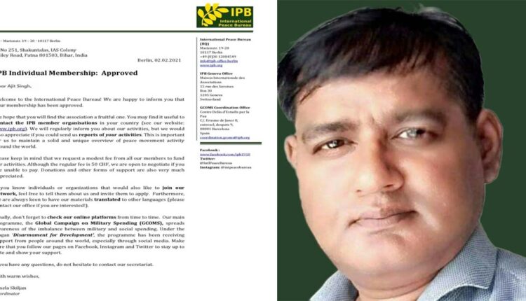 बर्लिन स्थित इंटरनेशनल पीस ब्यूरो के सदस्य बनाए गए बिहार के अजीत सिंह