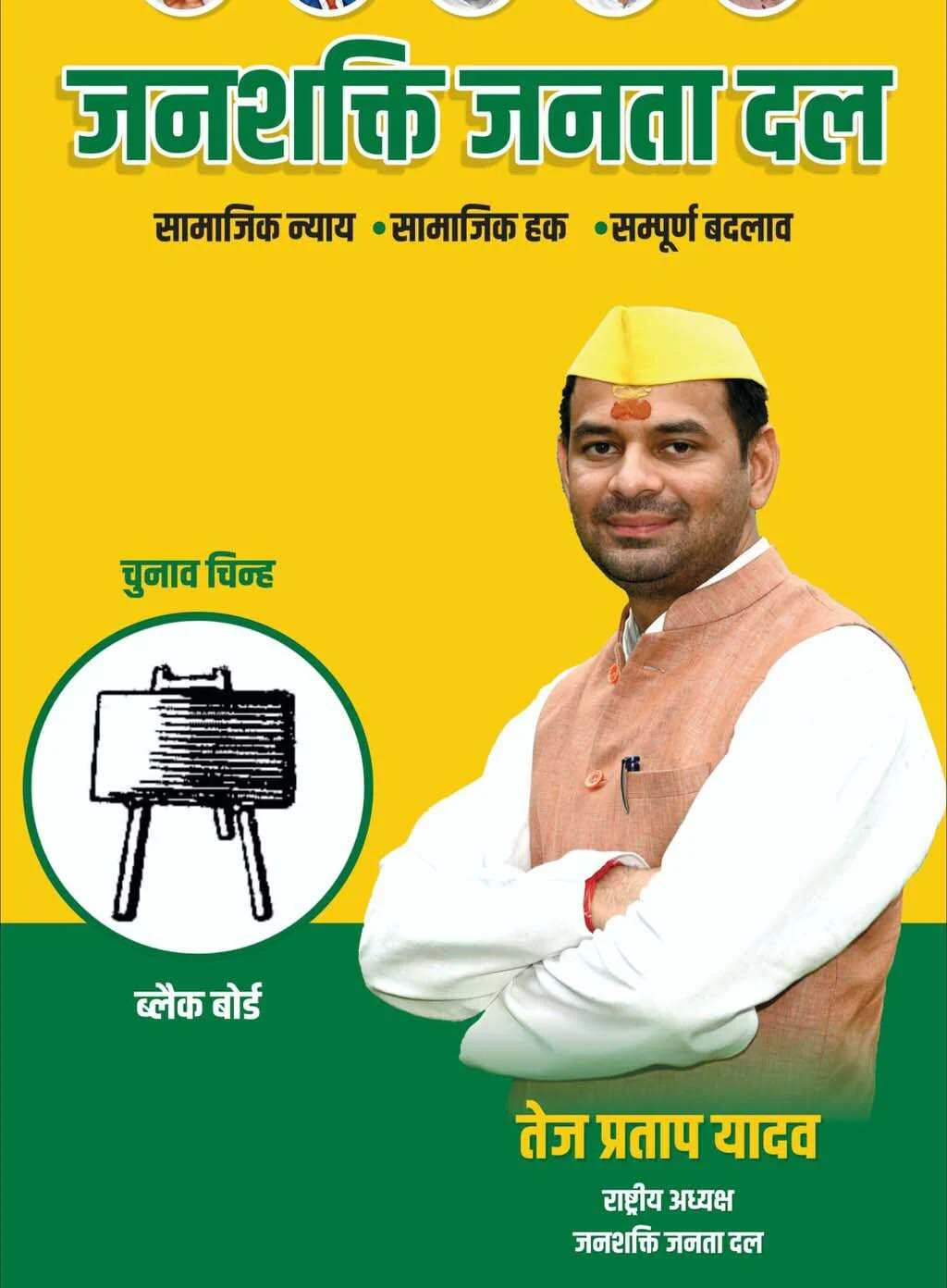 पटना (voice4bihar news)। RJD से निकाले जाने के बाद लालू प्रसाद के बड़े पुत्र तेज प्रताप यादव ने जनशक्ति जनता दल का विधिवत गठन कर लिया है। चुनाव आयोग ने जनशक्ति जनता दल को मान्यता देते हुए दल के चुनाव चिह्न के रूप में ब्लैक बोर्ड आवंटित किया है। तेज प्रताप ने अपनी नयी पार्टी का पोस्टर जारी किया है। इसमें मोबाइल नंबर 9199176667 जारी करते हुए इसके माध्यम से आम लोगों से पार्टी से जुड़ने की अपील की गयी है।