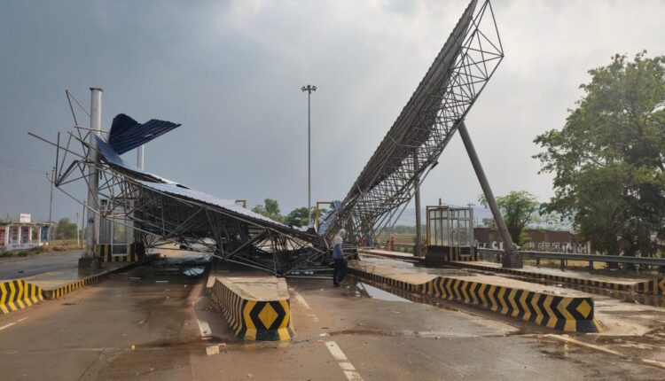 शनिवार की दोपहर आई आंधी में पूरी तरह से क्षतिग्रस्त हो गया टोल प्लाजा
